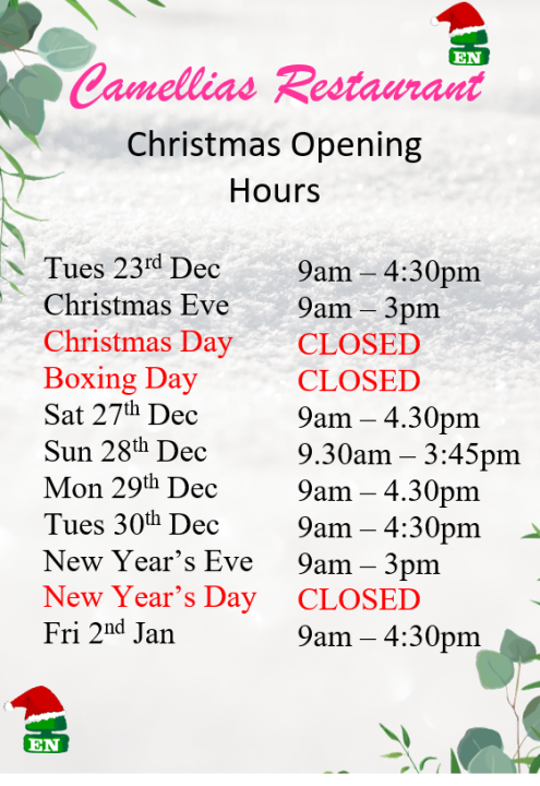 We are dog friendly in our Garden Centre and the covered area of Camellias Restaurant